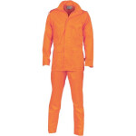 • This Material does not comply with AUS /NZ HiVis Standard. Waterproof, two flap side pockets, foldaway hood. 3/4 Length Jacket & elastic side pants with leg press stud closure.